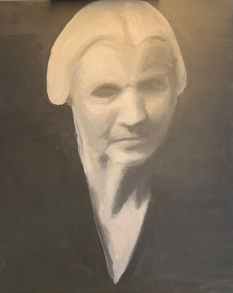 “Skygge over gården” - akryl og kridt på lærred
