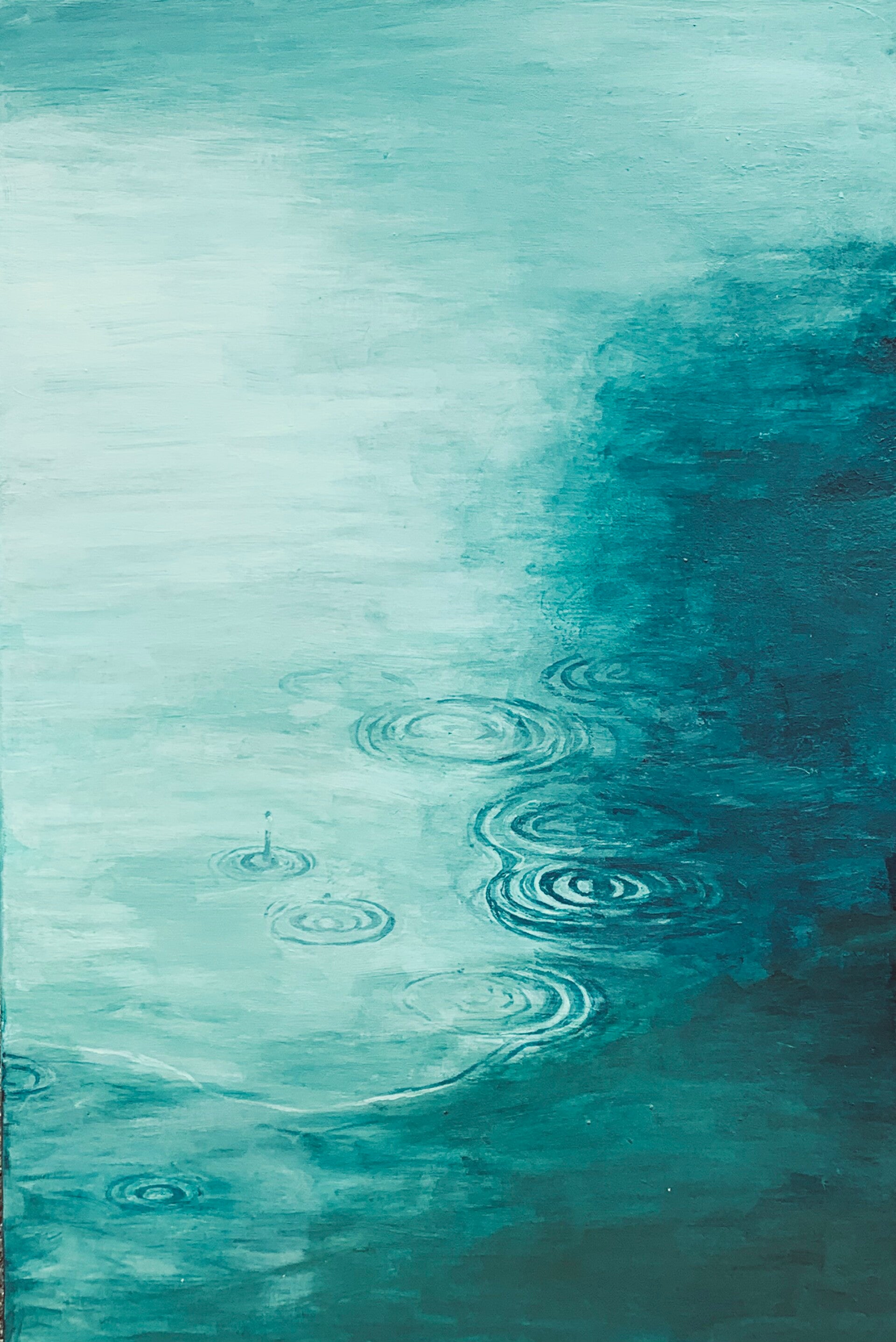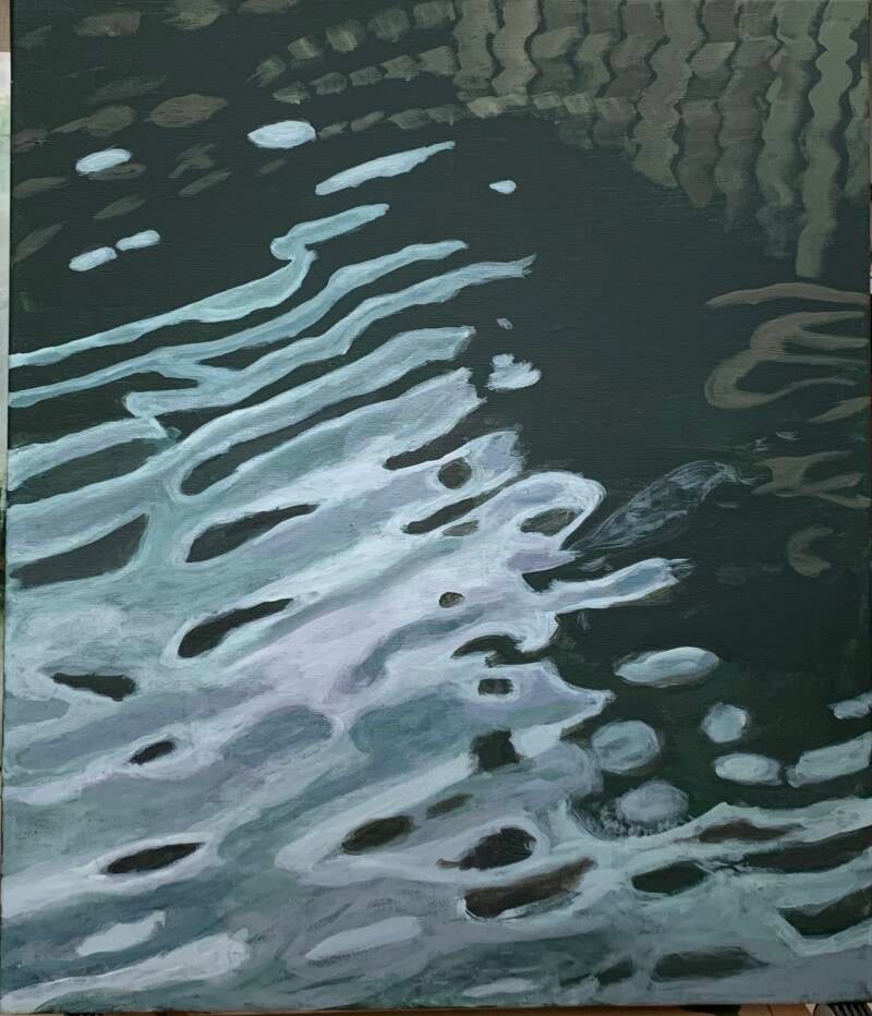 60 x 80 cm Skygger i vand. Akryl på lærred